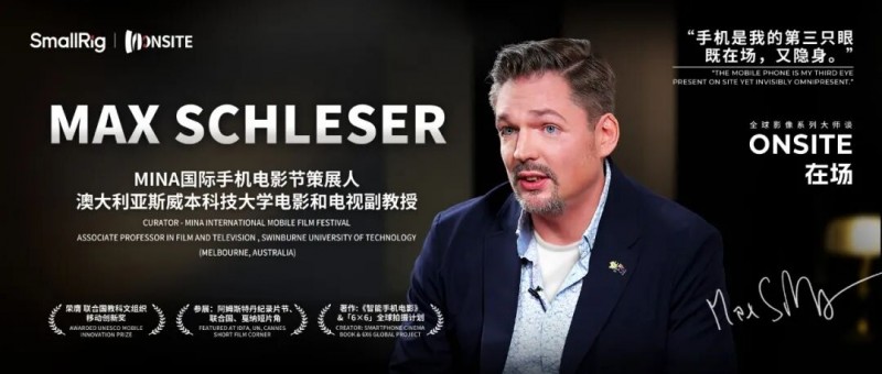 “Onsite在场”是乐其创新旗下品牌SmallRig斯莫格打造的全球影像大师访谈IP,旨在邀请影像领域具有影响力的代表性人物,分享创作动机、故事心得与灵感来源,为全球影像创作者搭建思想交流的平台。此次对话的主角MaxSchlezer,社交媒体账号名为“马克斯移动(MaxMobile)”,以“移动故事讲述者”“智能手机电影人”自居,其创办的移动创新互联协会(MINA)旗下国际手机电影节,已成为南半球运行时间最长的智能手机电影节,如今正携手乐其创新SmallRig迈向第14个年头。